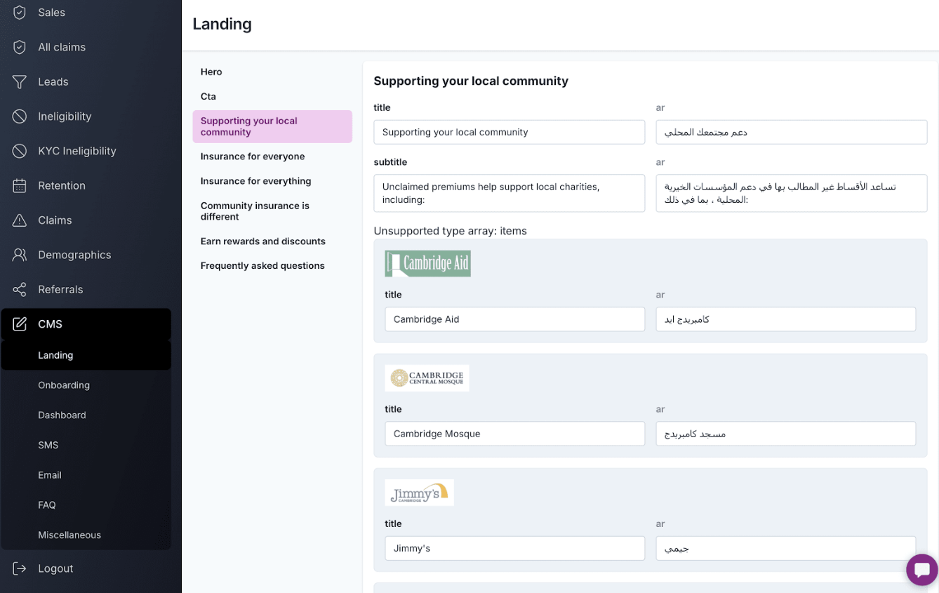 Mobile-first, multi-lingual, and easy-to-use, we’ll customise our white-labelled insurance (Content Management System) CMS according to your specific requirements and legal obligations. Our platform streamlines your processes, eliminates unnecessary costs, and ensures your customers get excellent and fair service – every time.